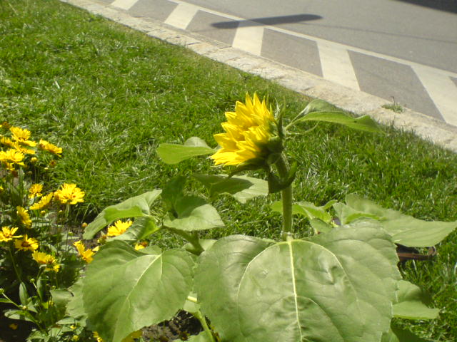 Not far from there on a traffic circle, beautifully planted in yellow and purple by the park and gardens services, is a sunflower that was planted by an anonymous beautifier:
