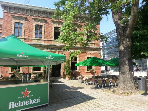 In addition to the monumental statues of steers on the gates to the stockyards, there is other evidence of the past uses of the space–for example, an enormous building still called the “Rinderhalle” or “beef hall” and the Municipal Vocational School for Butchers (photo below). In true Vienna fashion there is also much for the 21st century. The Campus Vienna Biocenter, one of the leading international biomedical research centers, is out there, too. And there are a number of cheerful eateries that lend life and gaiety to the neighborhood.