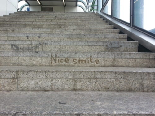 I’m not a huge graffiti fan, but I thought this was really clever. I mean, you can’t help but see it as you walk up the stairs, and you can’t help but smile when you see it. And I am a huge smile fan.