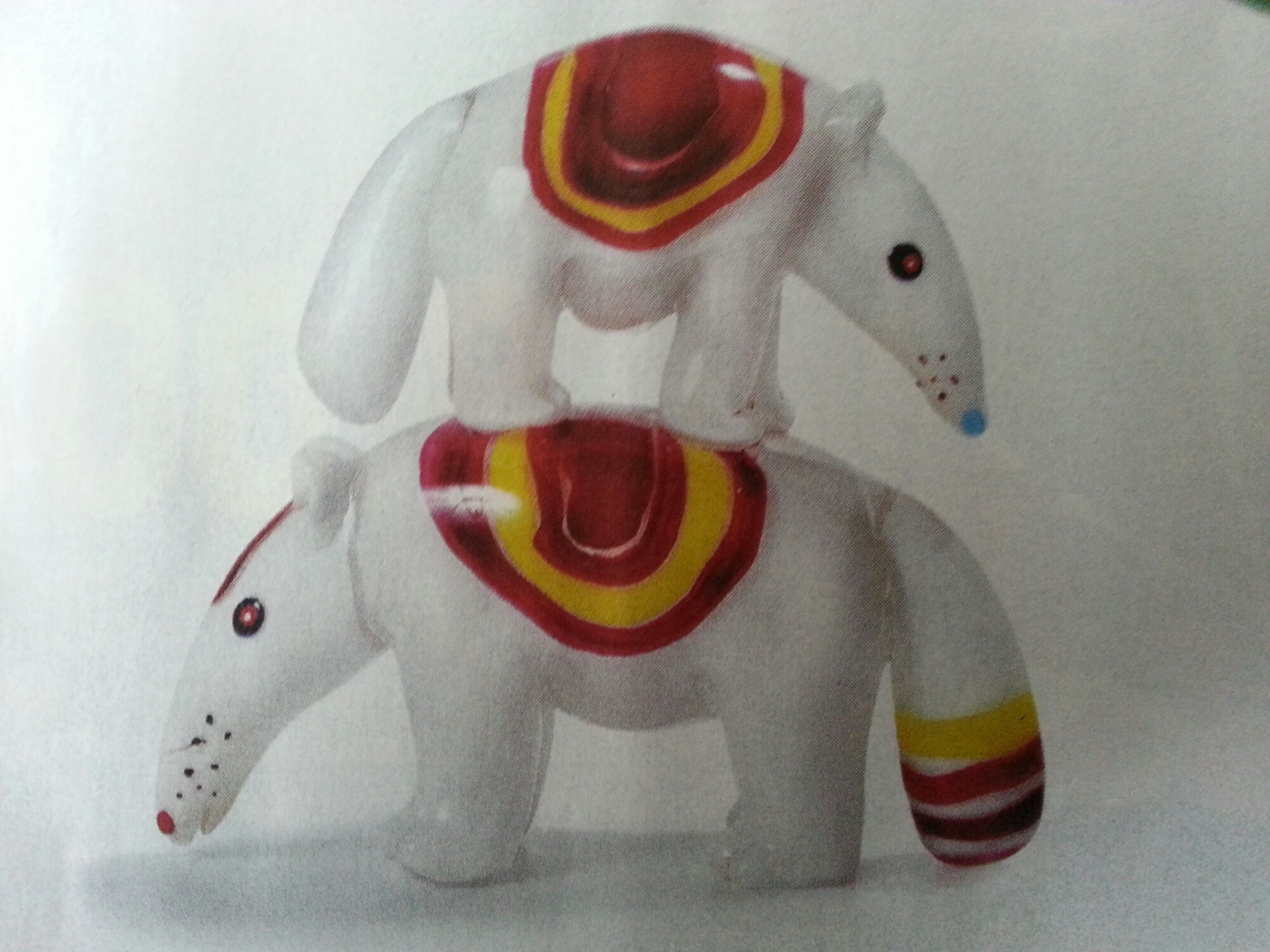 Welcome to the world of Rosemarie Benedikt, an Austrian artist born in Baden bei Wien in 1939, and still active. I have adored her work for years and last year was even lucky enough to be able to buy one of her coatis as a present for the friend who told me the anteater (Ameisenbär or ant-bear) joke. Imagine then my pleasure at opening my Saturday Kurier this gray, damp morning in Vienna and finding an article about Benedikt and her work, accompanied by lots of photos. That helped a lot!