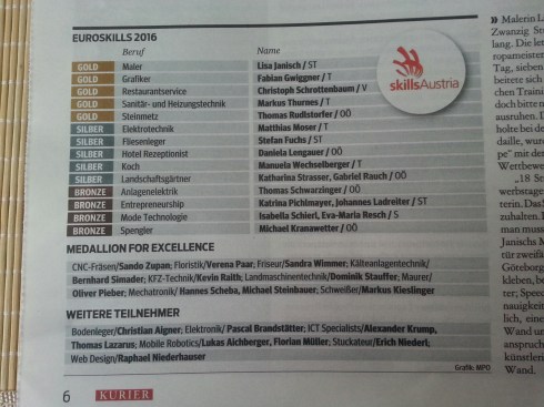 The EuroSkills championship has just taken place in Göteborg, Sweden, and once again Austria has done extremely well for such a small country (see below).