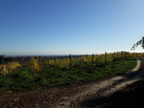After this stretch, we made it to a “Forststraße” where cars, at least, were not allowed and could take time to photograph the view and the vineyards.