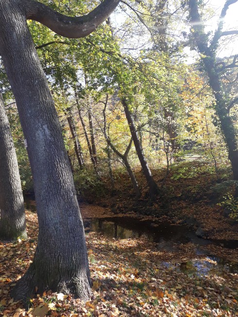Then we followed the path along the wall of the Lainzer Tiergarten until we turned off to the left in the direction of Mauer. It was an exquisite walk through an autumn woods at its peak, with just the occasional flurry of bright leaves blown from the trees.