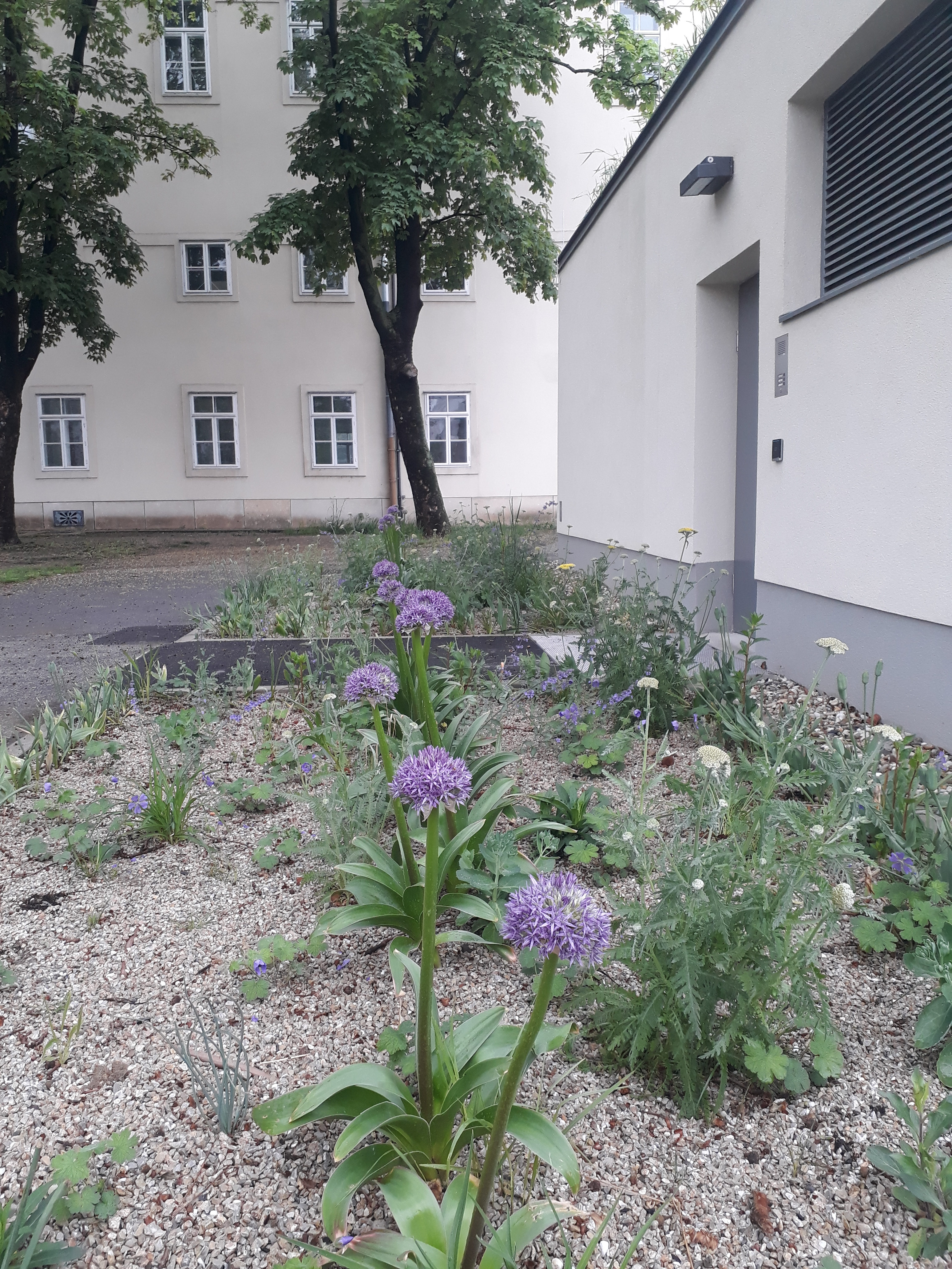 Every year the MA 42 (the “Magistratsabteiling” of the City of Vienna responsible for public parks and gardens) choose certain mixtures of flowers that they plant everywhere. The daffodils and red tulips are gone, but these have come out. I have no idea what they are (I am the kind person who is happy to work in a garden as long as someone else tells me what to do), but they are tall (about a foot and a half) and look like something out of Dr. Seuss, if you ask me. Fun.