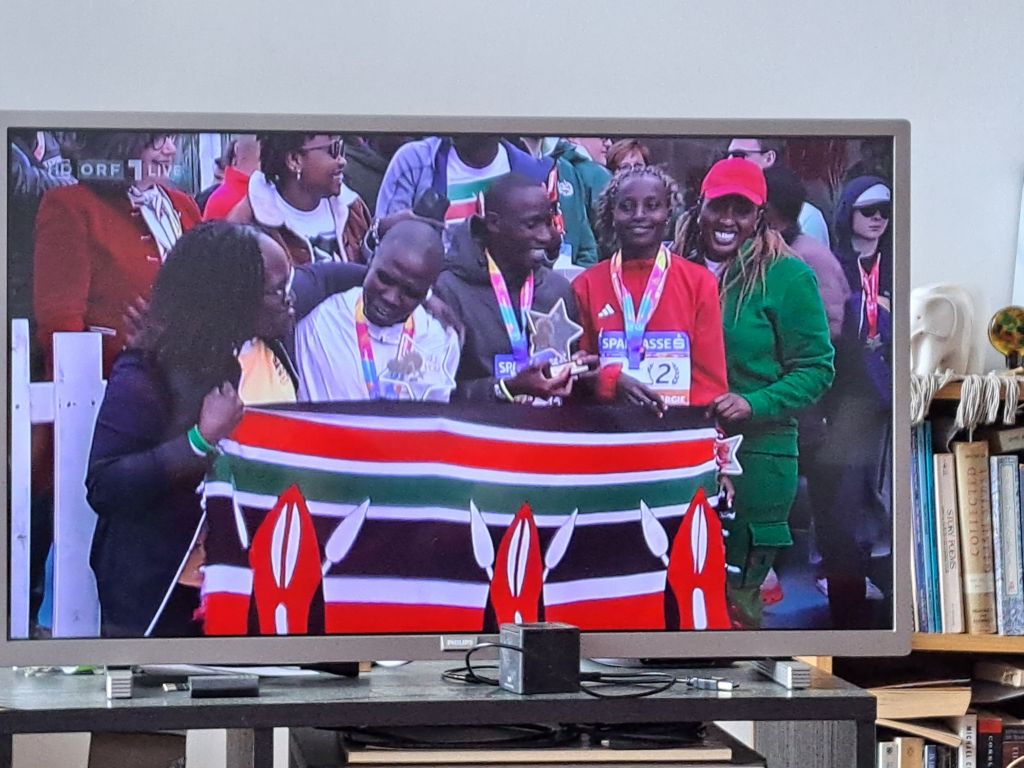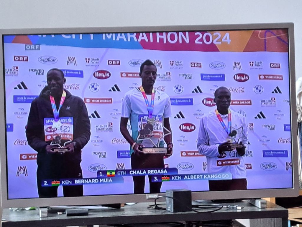 So, beautiful weather and clear wins by the leaders: Chala Regasa (ETH), Bernard Muia (KEN), Albert Kangogo (KEN), Mario Bauernfeind (AUT), Nazret Weldu (ERI), Faith Chepkoech (KEN), Rebbeca Tanui (KEN), and Julia Mayer (AUT).