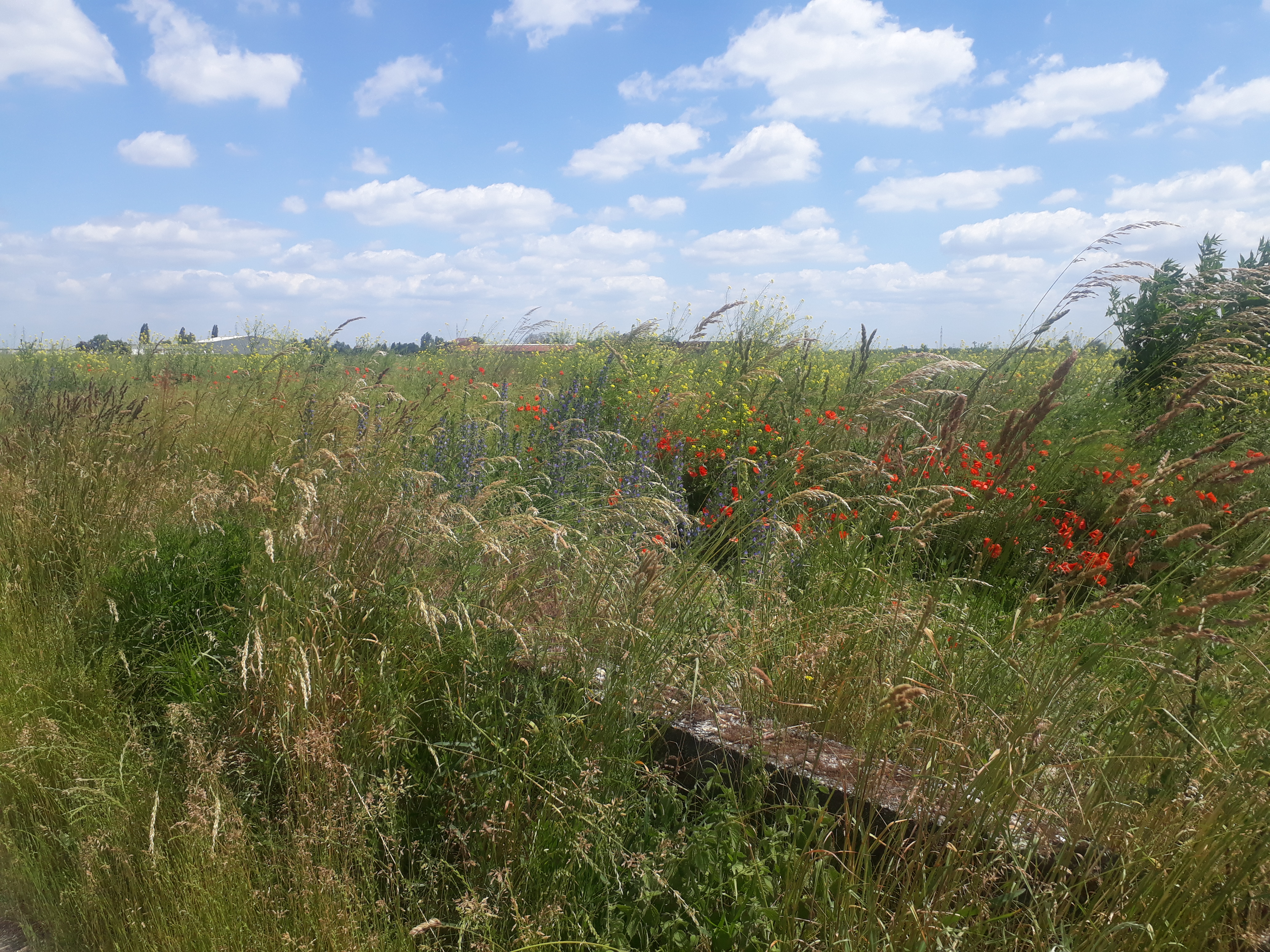 It was a beautiful sunny day (although with such a wind that a friend sent a message: “Hopefully you will not get blown away!”) with beautiful flowers (see above), including lots of elderflowers (visible on the left of the photo below), which my hiking partner collected to make syrup, and some interesting wildlife. We saw a bird that neither of us had ever seen before and I couldn’t find in my field guide and which I think may, in fact, be a pet that escaped and is now living it up in the fields of the 22nd district. In shape it had some similarities to a dove but was much larger, had bright blue markings on its head, and interesting black and white striping on its tail. If anyone has any ideas, please let me know.